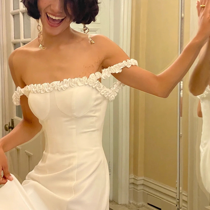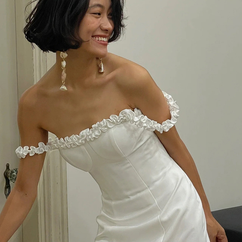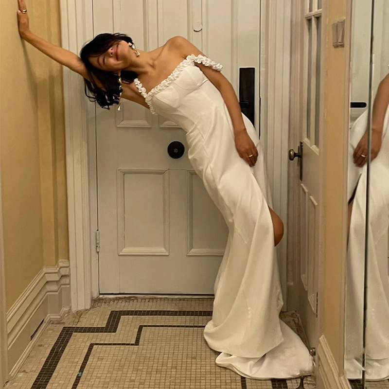 One shoulder White Stain Wedding dress